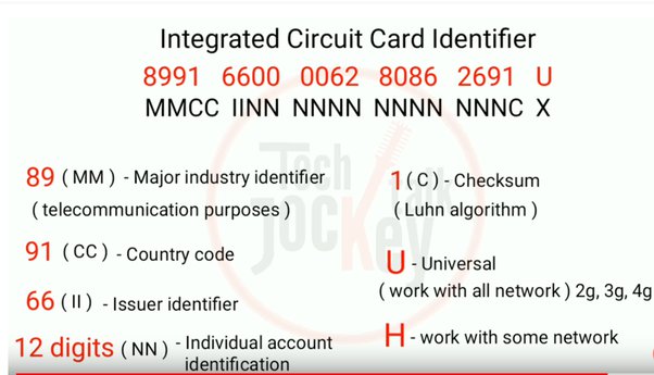 ICCID의 숫자는 SIM 카드의 제조 국가, 제조 업체 또는 서비스 제공업체 네트워크, 고유 ID가 포멧에