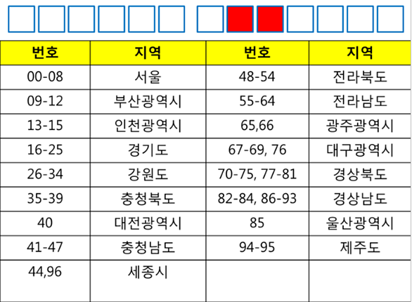 성별코드 | 지 | 역 | 코 | 드 | 출생신고순서 | 위변조검증번호 |