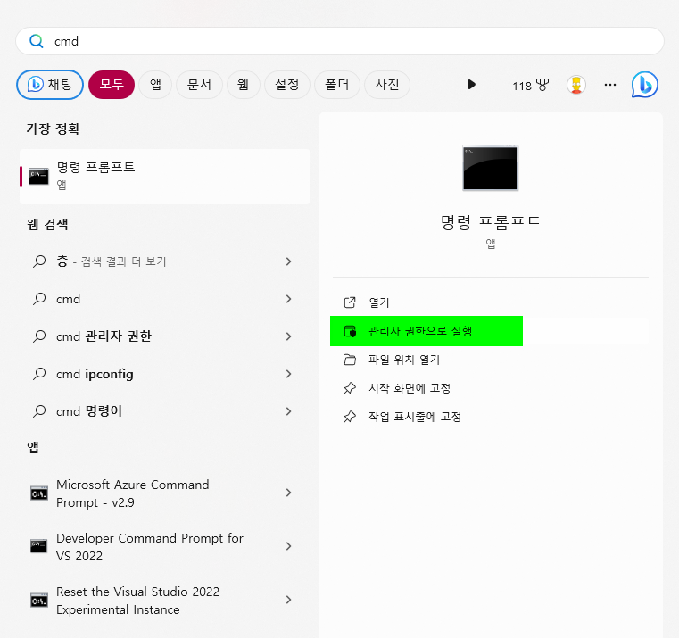 커맨드창을 열고
