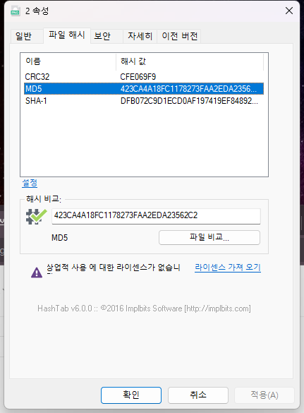 e.g.) 2.png 라는 랜덤 파일의 해시값을 확인해본다.