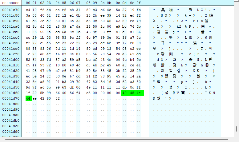 PNG 형식의 이미지 파일의 시그니처는 89 50 4E 47 0D 0A 1A 0A 이고, 푸터는 49 45 4E 44다.